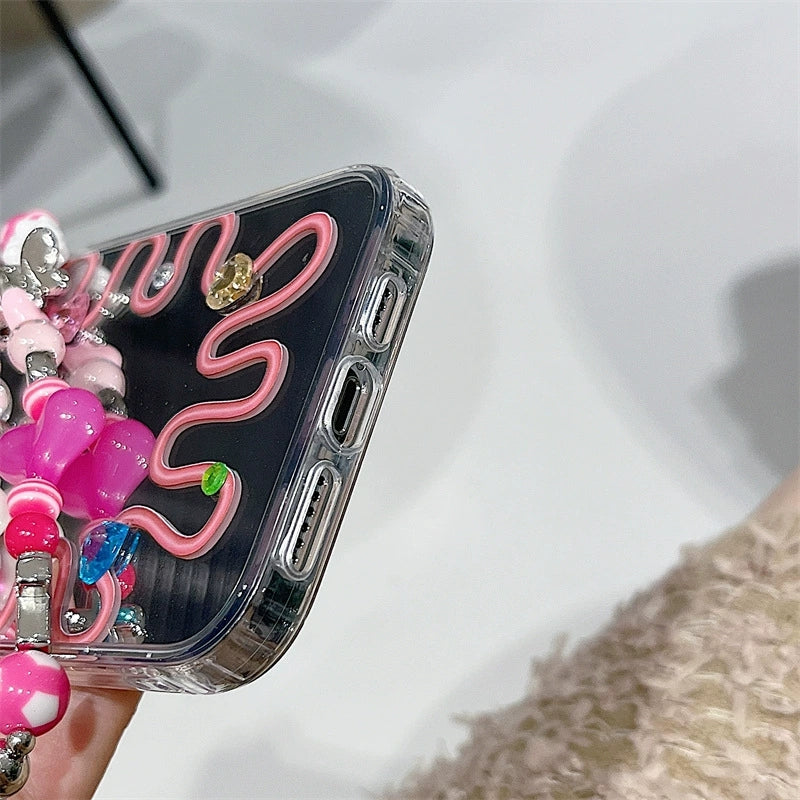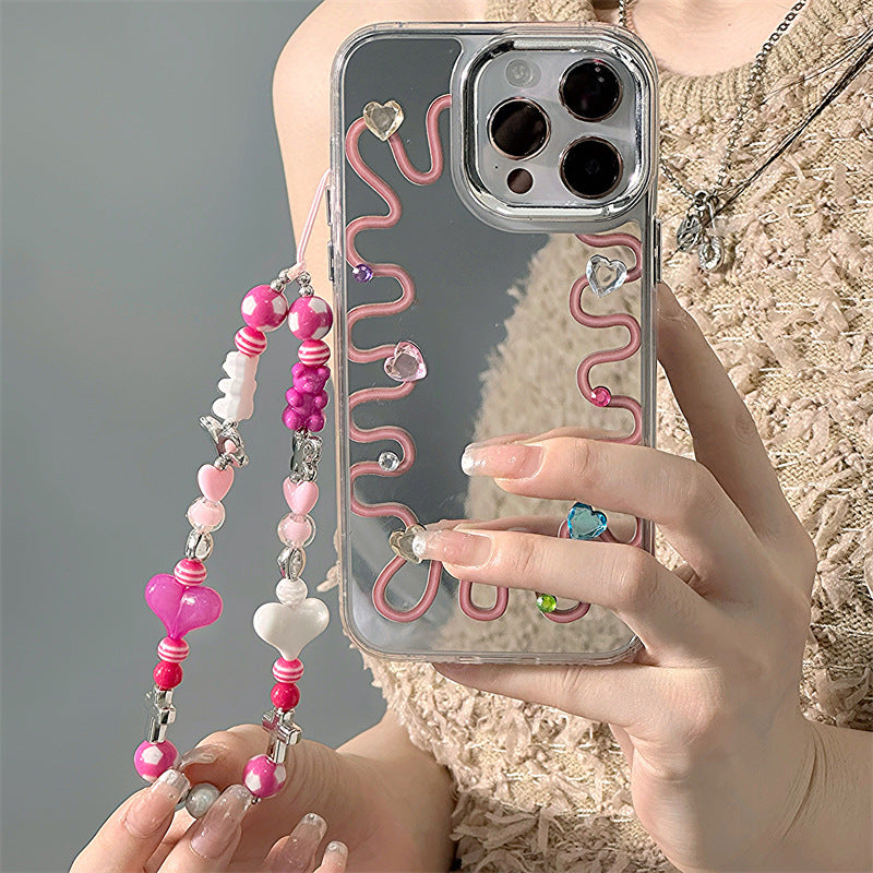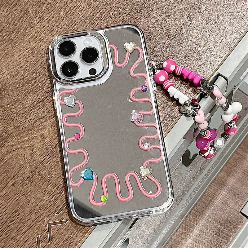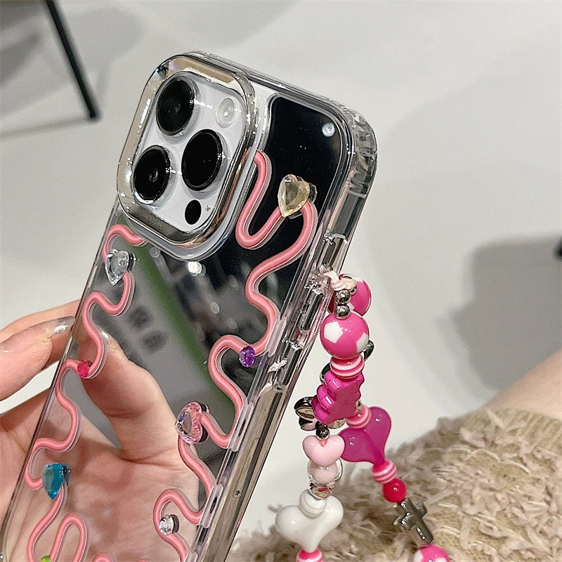 Dinos。 鏡面 iPhone 保護殼三合一加手機鏈