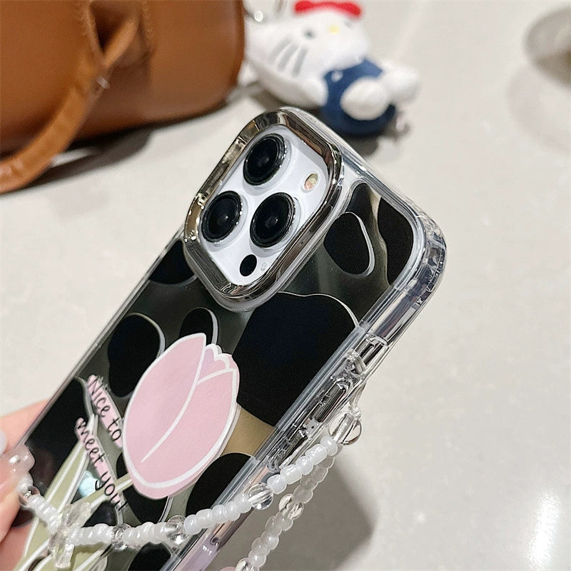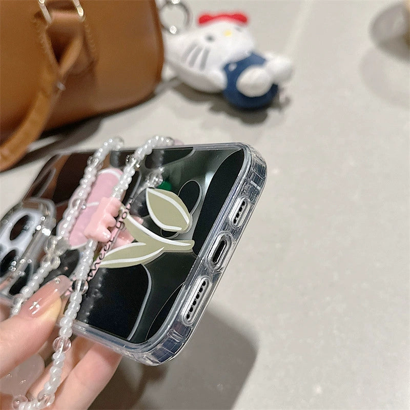 Dinos。 鏡面 iPhone 保護殼三合一加手機鏈