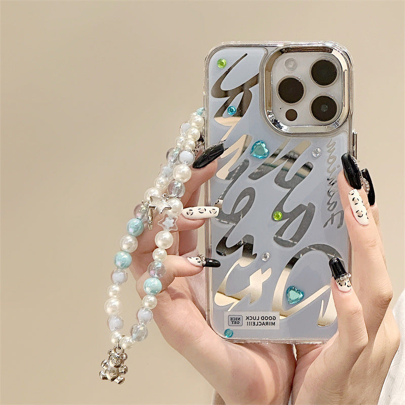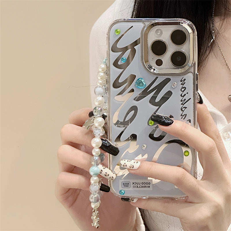 Dinos。 鏡面 iPhone 保護殼三合一加手機鏈