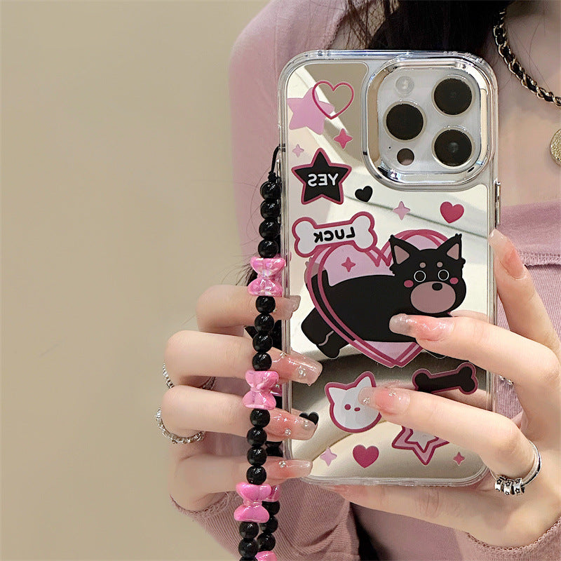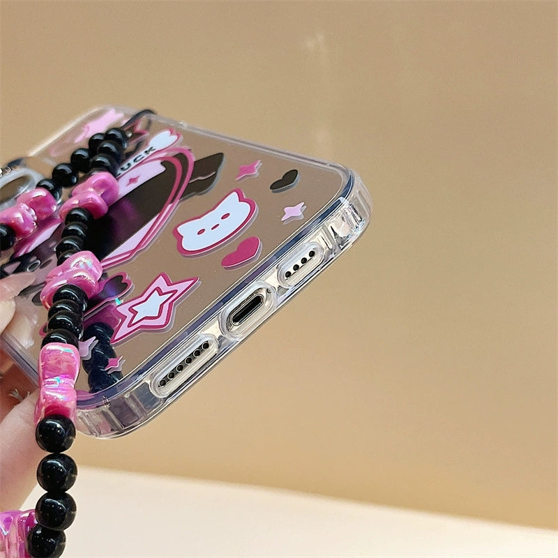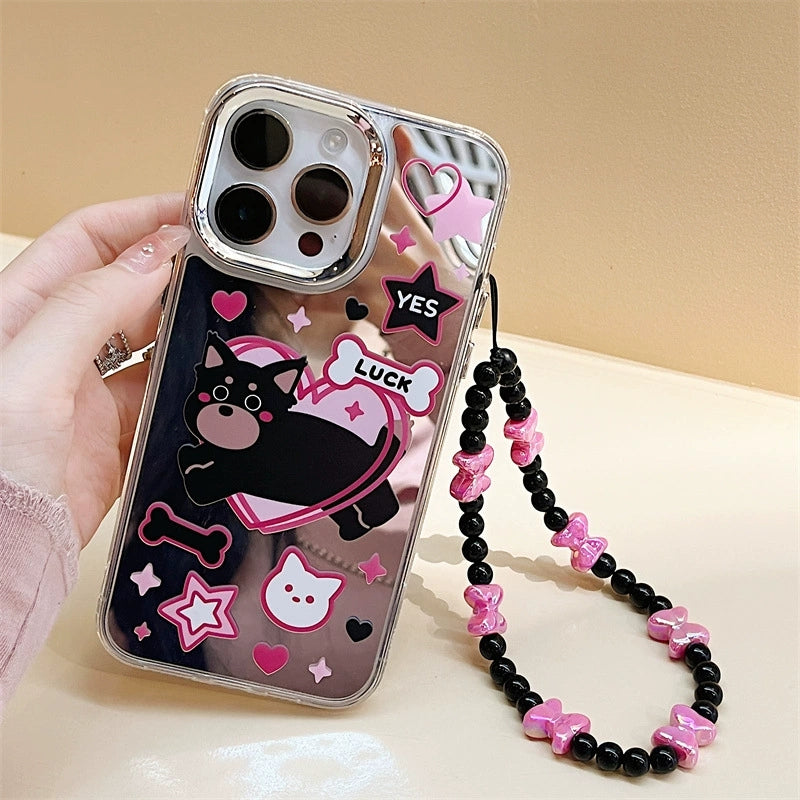 Dinos。 鏡面 iPhone 保護殼三合一加手機鏈