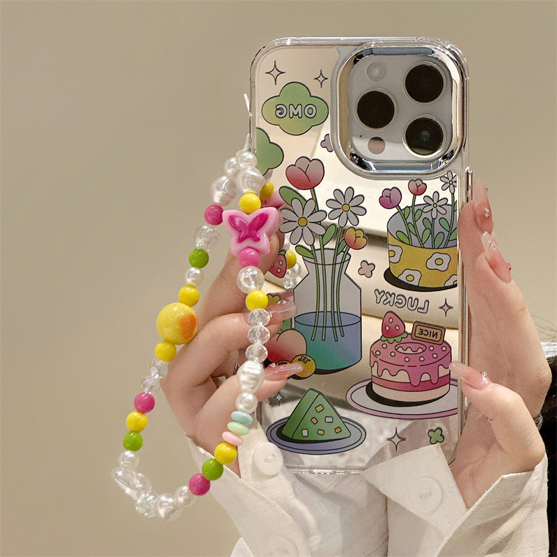 Dinos。 鏡面 iPhone 保護殼三合一加手機鏈
