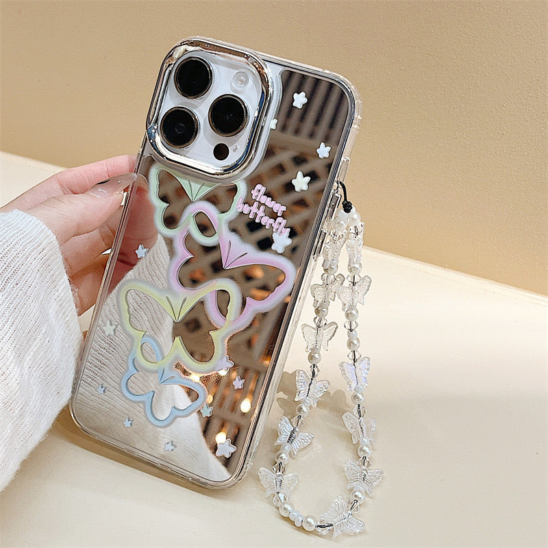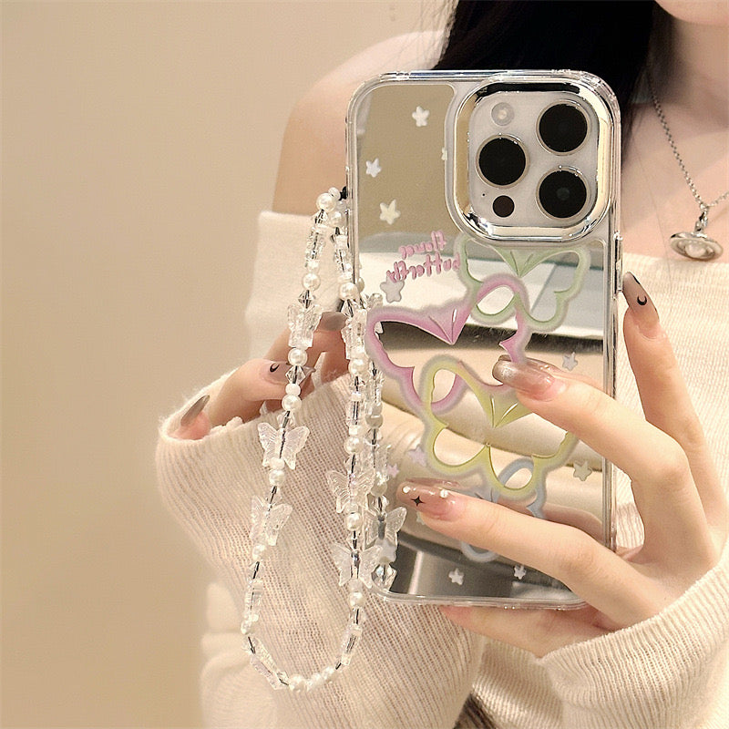 Dinos。 鏡面 iPhone 保護殼三合一加手機鏈